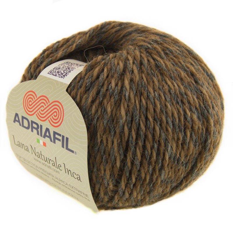 Adriafil Lana Naturale Inca is een tijdloos garen van twee soorten wol die beide geschikt zijn voor de gevoelige huid. Daarnaast is het een warm garen met natuurlijke kleuren, waarin de bruine kleur het assortiment domineert. Het is een gemêleerd garen waarin 2 of 3 kleuren zijn verwerkt en is geschikt om mee te breien en te haken. Brei een stoere herentrui, of een warme damestrui of haak een warme winter sjaal met bijpassende muts.