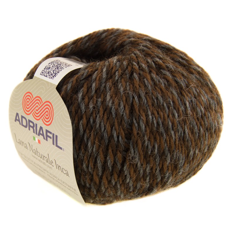 Adriafil Lana Naturale Inca is een tijdloos garen van twee soorten wol die beide geschikt zijn voor de gevoelige huid. Daarnaast is het een warm garen met natuurlijke kleuren, waarin de bruine kleur het assortiment domineert. Het is een gemêleerd garen waarin 2 of 3 kleuren zijn verwerkt en is geschikt om mee te breien en te haken. Brei een stoere herentrui, of een warme damestrui of haak een warme winter sjaal met bijpassende muts.