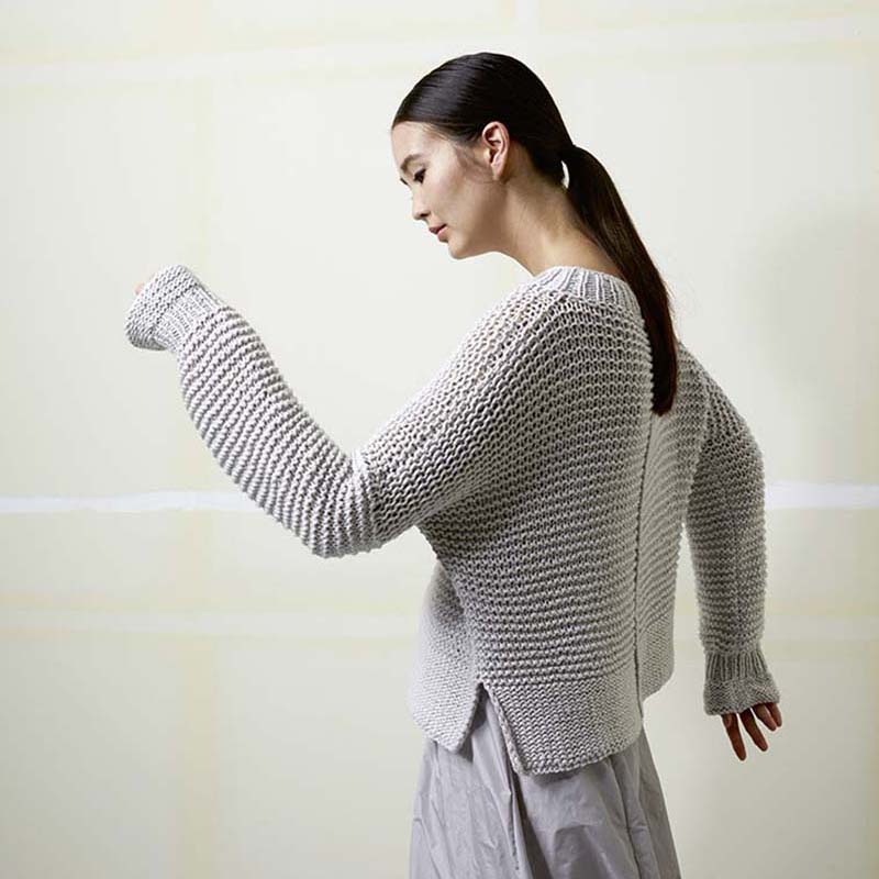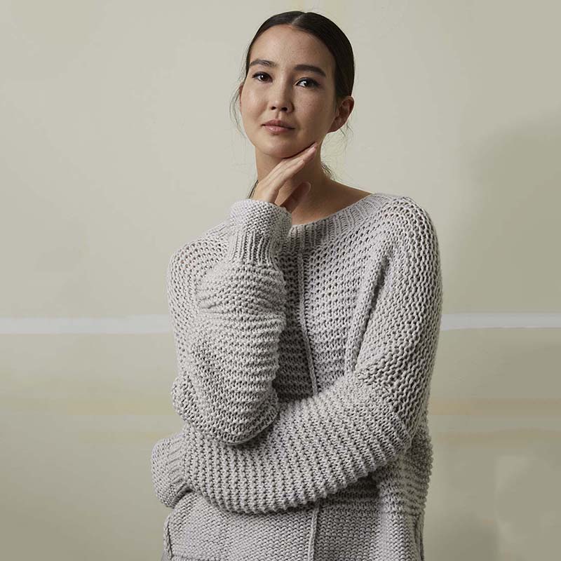 De zachte Amira damestrui in ribbelsteek breien doe je met het Lang Yarns Amira breipakket. Door de trui met 3 verschillende naalddiktes te breien, wordt de ribbelsteek steeds anders, wat een speciaal effect geeft. Het zachte katoen garen Lang Yarns Amira voelt super comfortabel en is het hele jaar door prettig om te dragen.