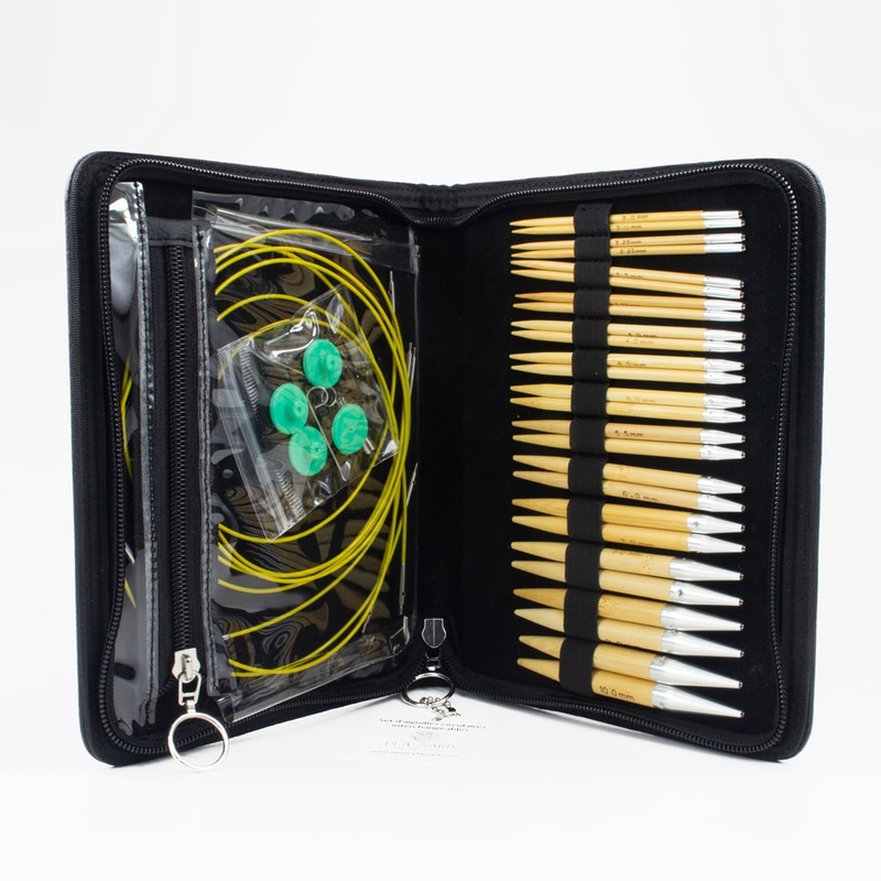 De bamboe verwisselbare breinaaldenset van Plassard is een complete en veelzijdige set voor iedere breiliefhebber, van beginner tot ervaren handwerker. De set bevat bamboe naaldpunten van 10 cm in diverse maten (3 t/m 10 mm) en kabels in lengtes van 20 tot 100 cm, waarmee je eenvoudig verschillende naalden en projecten samenstelt. Dankzij het gebruik van hoogwaardig bamboe voelen de naalden licht en warm aan in de hand, wat zorgt voor een comfortabel breien, zelfs tijdens lange sessies.