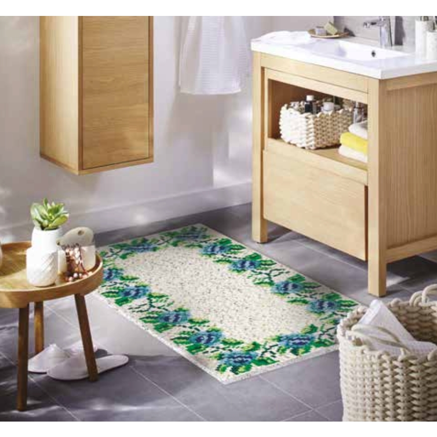 Blauwe bloemen vloerkleed knopen - Knooppakket Smyrnalaine 3925