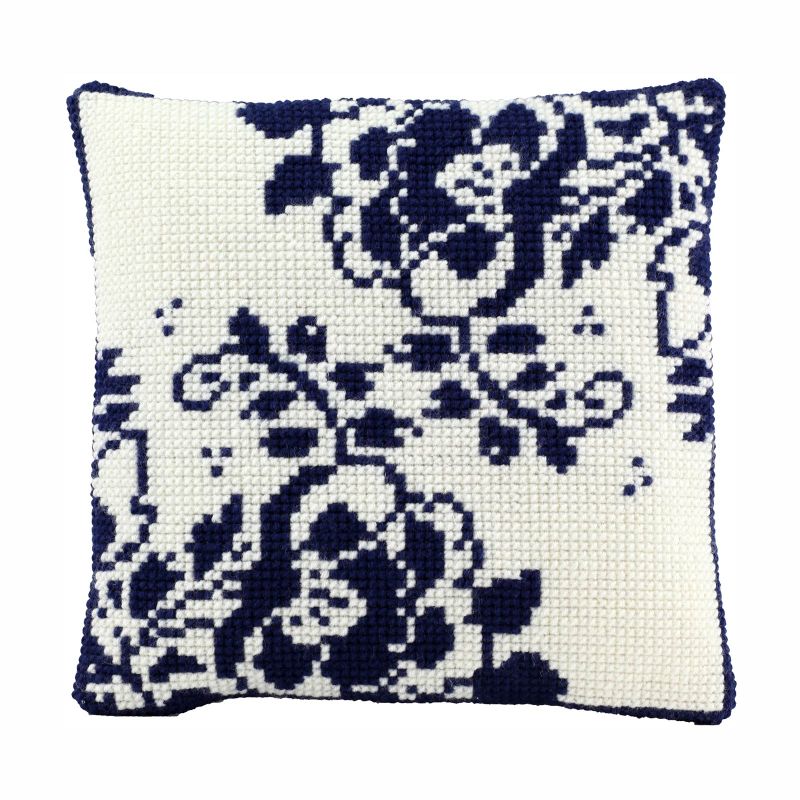 Bloem Delfts Blauw borduurkussen - PAKO borduurpakket
