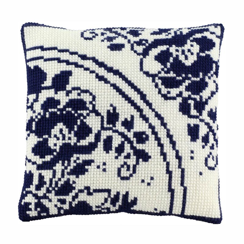 Bloemen Delfts Blauw borduurkussen - PAKO borduurpakket