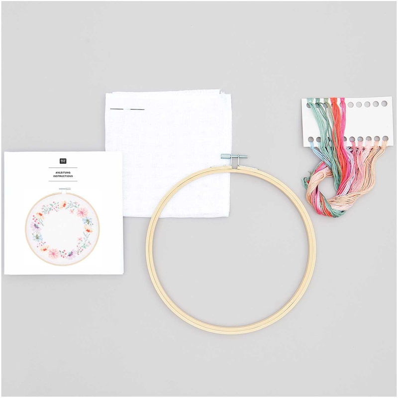 Bloemenkrans in ring telpatroon - borduurpakket Rico Design