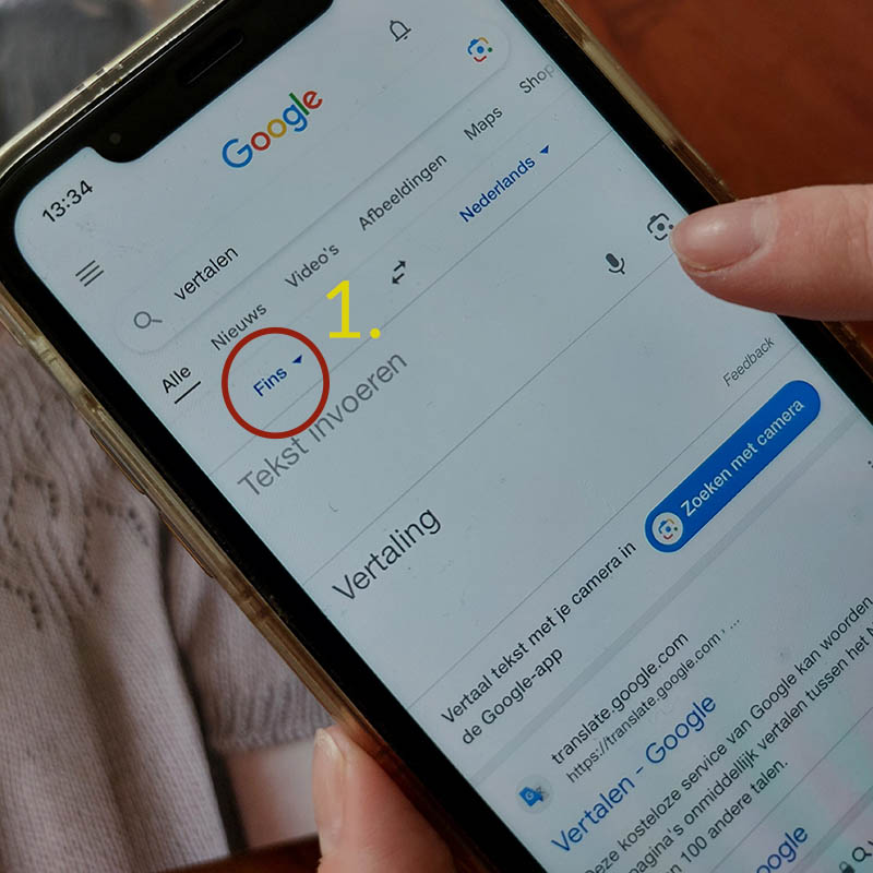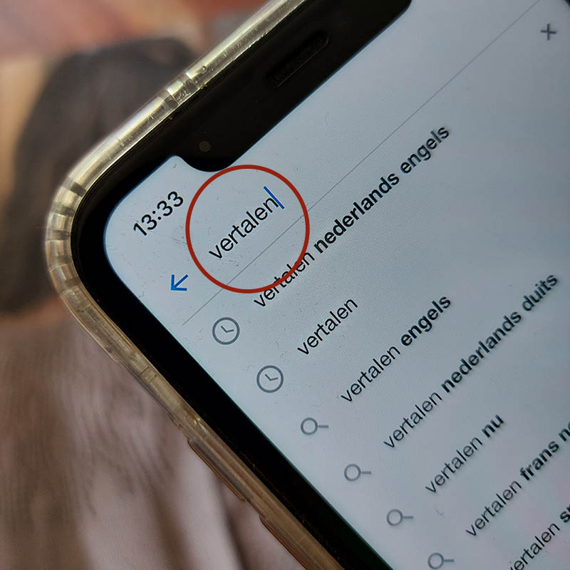Open de telefoon en tik in de zoekbalk het woord 'vertalen' in.