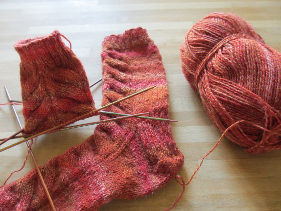 Eén van de fijnste dingen aan het breien van sokken is dat er geen afwerking nodig is. Een trui heeft naden die je dicht moet naaien, een boord dat je moet breien en ongeveer 6000 draadjes die je moet wegwerken. Met een sok heb je twee draadjes die je moet inweven en dat is alles. Voor zo’n luie donder als ik is dat ideaal. Je hebt gelijk eer van je werk.