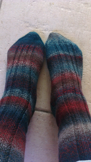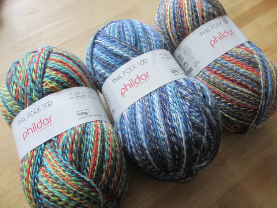 Ze breiden heel snel maar het was niet heel spannend om te maken. Mijn vorige paar sokken waren ook al grijs dus ik had dringend behoefte aan wat kleur. Dit zijn mijn nieuwe aanwinsten. Drie bollen Phildar Folk.