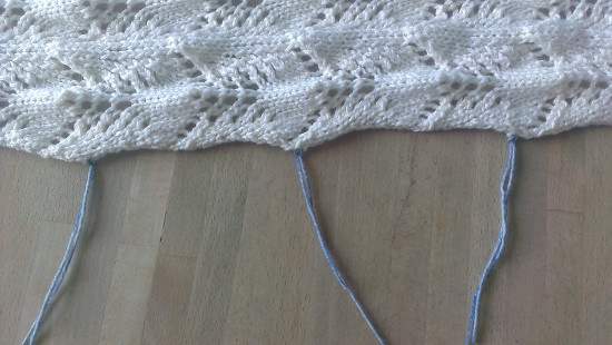 Het breigedeelte van mijn ecru ajourvest (gebreid met Together van Lana Grossa) was in recordtijd klaar. Daarna heb ik het project een week lang genegeerd maar uiteindelijk moest ik er toch een keer aan geloven: de afwerking.