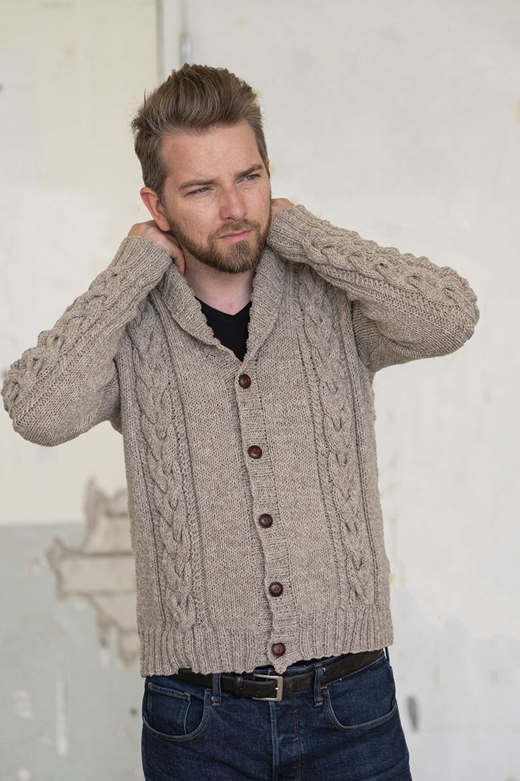 Zo is het garen licht elastisch en voelt super zacht door het natuurlijke vet dat nog een beetje aanwezig is. Hierdoor wordt het herenvest licht waterafstotend en kun je het perfect dragen als jas tijdens een najaars wandeling. Dat is precies waarom ontwerpster Joke dit herenvest met kabels van de Fonty Fado heeft gebreid voor ons 2e FairMade Magazine.