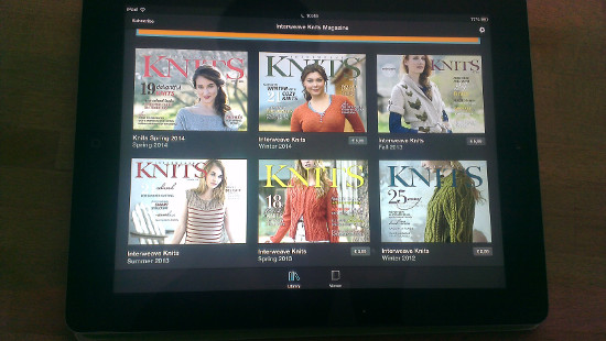 Oja, ik heb toch zoiets leuks ontdekt. Ik was op de iPad op zoek naar brei apps. Nou, die zijn er zowat niet. Niks leuks/nuttigs in ieder geval. Maar wat er wel is is de mogelijkheid om met één druk op de knop tijdschriften te kopen. Tijdschriften die hier in nederland moeilijk of niet te krijgen zijn. Hoe geweldig is dat! Mijn creditcard gaat overuren draaien de komende tijd.