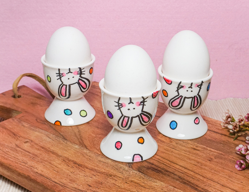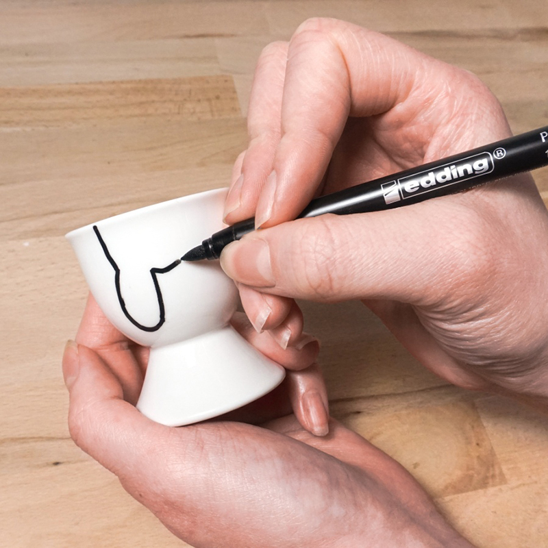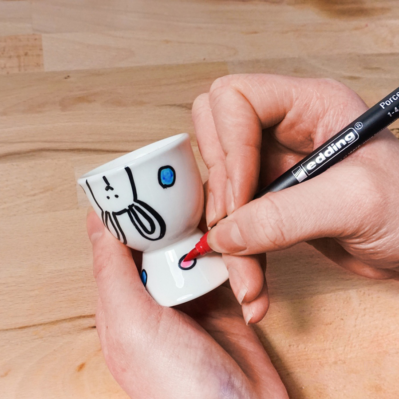 Bij de lente hoort Pasen en bij de Pasen horen eieren. Dus maak zelf leuke eierdopjes voor op de eettafel. Heel eenvoudig met de edding porseleinstiften.