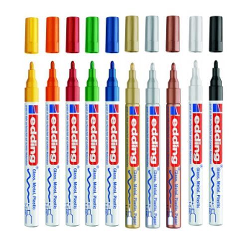 Ook kun je aan de slag met glanslak stiften van edding. Deze zijn perfect voor gladde ondergrond, zijn veegvast, dekken en geschikt voor binnen en buiten. Je kunt de stiften los bestellen, maar er zijn ook speciale sets met glanslakmarkers.
