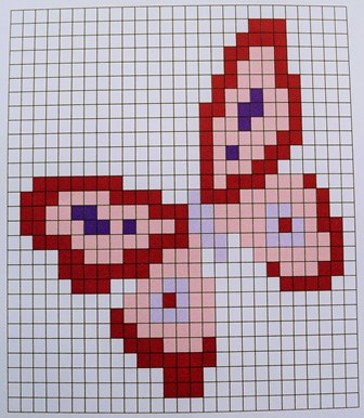 Wil direct aan de slag met zo’n klein project, dan heb ik hieronder de patroontjes van het olifantje en de vlinders staan. Ik hoop dat het goed genoeg te ‘lezen’ is.