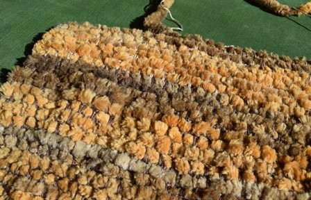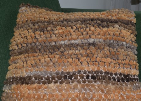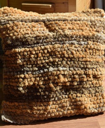 Zelf vindt ik het breien met zulke dikke naalden niet zo fijn. Daarom bedacht ik een andere manier om én wel prettig bezig te zijn én een mooi resultaat te hebben. Dat is best gelukt!