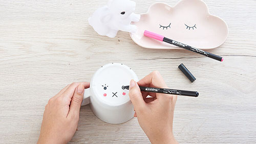 Let wel op dat je bordjes, bekers en eierdopjes in de oven op 160 graden kunnen. Dit is nodig om de inkt van de stiften goed te laten hechten.