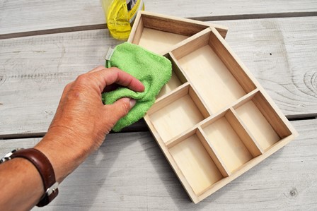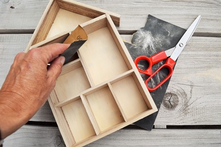 Doordat je zo op de houten ondergrond werk, trekt de verf er wat in en krijg een mooi speels ‘oud’ effect.