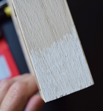 Schuur eerst het huisje licht met fijn schuurpapier.