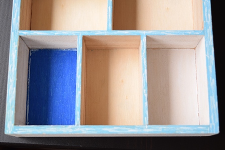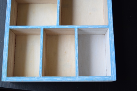 Omdat ik er verschillende dingen in wil leggen hou ik de kleuren neutraal. Het rechter vakje onder kleur ik wit…….