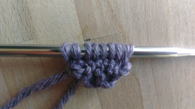 Daarna kun je alle steken afkanten op de volgende manier: Zet 2 steken op, kant 6 steken af.