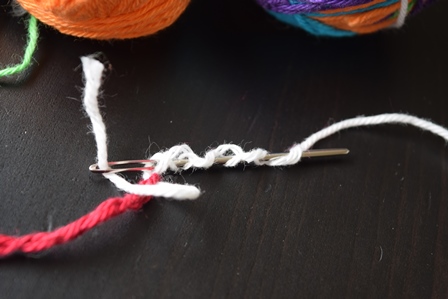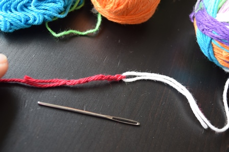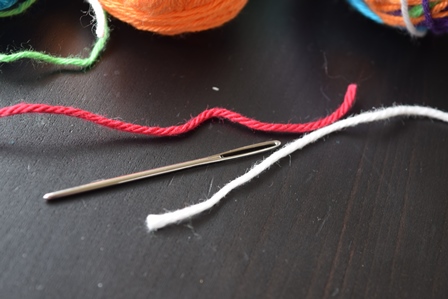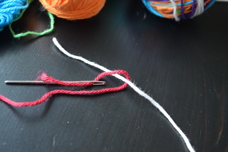 - Om de twee uiteinden aan elkaar te maken heb je een naald met een groot oog nodig. Bijvoorbeeld een ‘stop naald’.
