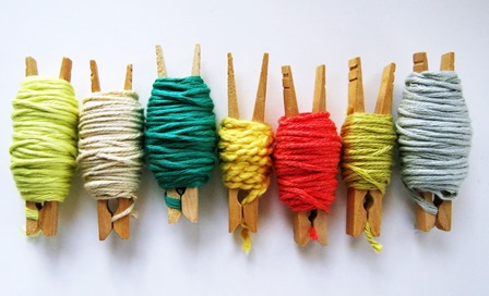 Iemand anders kwam met het handige idee de korte stukjes op een wasknijper te draaien, zo raakt het niet in de knoop.