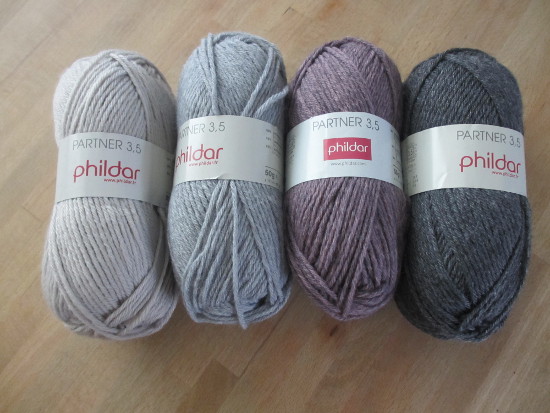 Een van mijn voornemens van dit jaar is dat ik meer wil gaan haken. Ik kan haken, ik ben er alleen niet bijzonder goed in. Ik heb een heleboel haakblogs in mijn bookmarks staan en ik word altijd zo hebberig van al die foto’s van woonkamers barstensvol met gehaakte dekens en kussens. Dat wil ik ook! Toen ik het peutertruitje aan het breien was met Phildar Partner bedacht ik me dat dit garen vast ook heel geschikt is om te haken dus maar eens kijken of ik een niet al te belachelijke kleurencombi bij elkaar kon verzinnen.