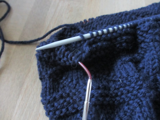 Omdat de telpatronen in het boek gebaseerd zijn op rondbreien moet ik nu even goed op gaan letten want ik moet in mijn teruggaande naalden mijn steken andersom doen. Recht wordt averecht en averecht recht.