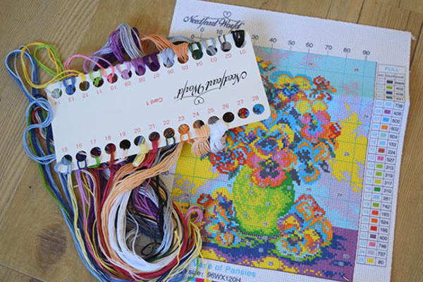 Als voorbeeld nemen we een NeedleArt voorbedrukt kruissteek borduurpakket met Aïda borduurstof.
