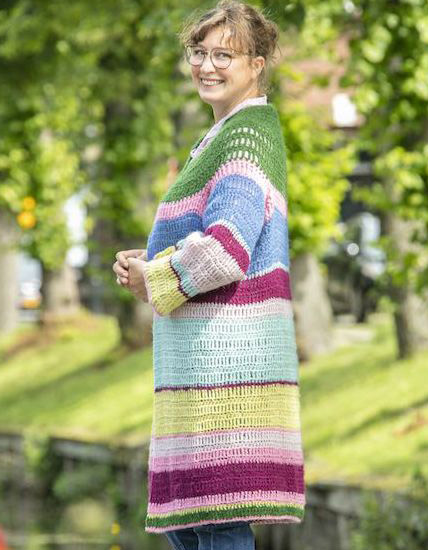 Een gestreept vest wat door zijn eenvoud en kleurgebruik in het oog springt. Dit damesvest hoort echt in de categorie ‘eyecatchers’. Heerlijk zacht en cosy! Tegelijkertijd is het ook een typisch FairMade ontwerp, omdat het wordt gehaakt met duurzaam garen.