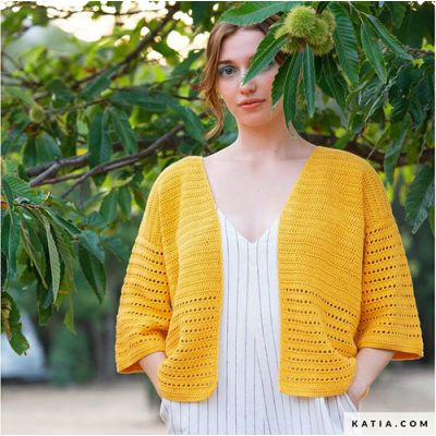 Dit lekker losse model haak je met het biologische garen Katia Fair Cotton. Een mooie zachte draad van 100% katoen. Ook dit damesvest is met eenvoudige haaksteken gehaakt, zodat het een leuk project is voor iedereen die de beginselen van het haken kent en graag iets nieuws wil maken.