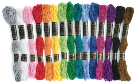 Het assortiment DMC borduurgaren is groot. Van effen gekleurd tot overlopend in kleurstelling en zelfs borduurgaren met glitter.