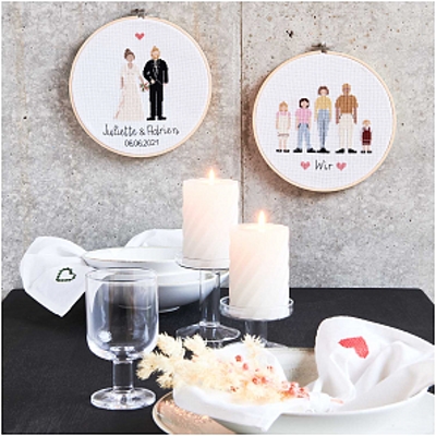 Maak het mooiste en meest persoonlijke huwelijksgeschenk met het borduurpakket bruiloft van Rico Design. Met dit complete borduurpakket creëer je een uniek portret van een bruidspaar, inclusief de namen en trouwdatum. Het pakket bevat gedetailleerde telpatronen van diverse figuren, letters en cijfers, zodat je het ontwerp volledig naar wens kunt aanpassen.