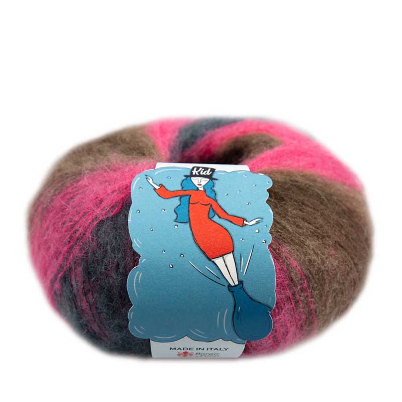 Borgo de Pazzi Kid Mohair is een prachtig mohair garen met een mooi kleurverloop. Een lekker licht garen dat je zowel met enkele draad als met meerdere draden tegelijk kunt breien of haken. Je kunt het zelfs met een effen kleur van een ander type garen combineren. Zo krijg je een dichtere structuur met het pluizige effect en een mooie kleuren melange.
