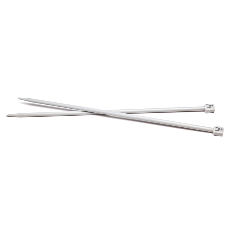 Voor de stabiliteit brei je meestal met de 40 cm lange naalden, met één naald onder de arm. Met deze breinaalden brei je gemakkelijk heen-en-weer en zijn daarom geschikt voor platte breiprojecten. De naalden bevatten aan de ene zijde een punt en aan de andere zijde een knop om te voorkomen dat je steken van de naald glijden tijdens het breien.