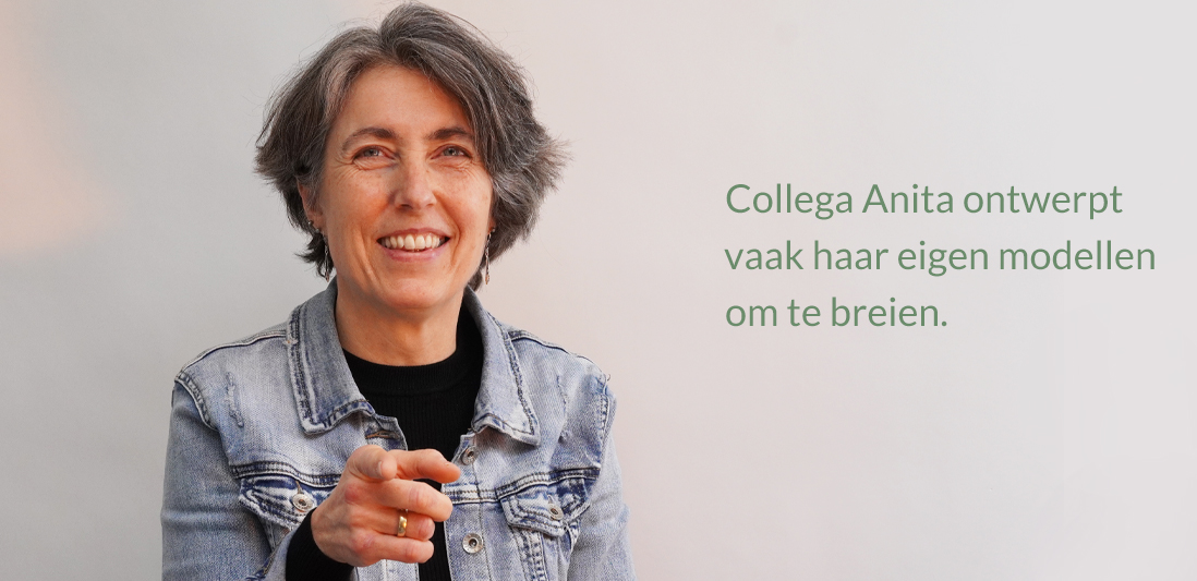 In de Beekbergse Wolhal kan je niet om de projecten van Anita heen. Vaak hangt er wel één van haar ontwerpen in de etalage of op de paspoppen in de winkel. Breien is de grote passie van Anita. Leer Anita beter kennen en lees hoe zij op de ideeën komt voor haar ontwerpen.