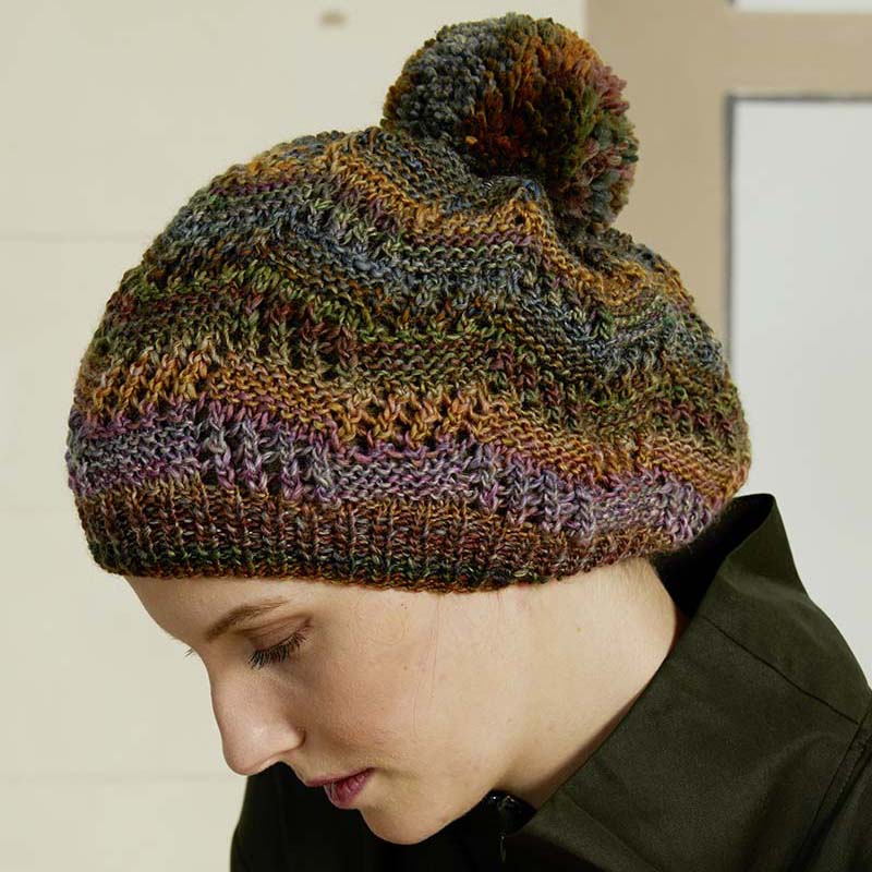 Deze gekleurde dames muts met pompon breien gaat simpel met het Lang Yarns Frida breipakket. Je breit de muts op naalden 3,5 en 4 mm. Door het baret model, het ajour motief en de pompon ontstaat er een super leuk model!