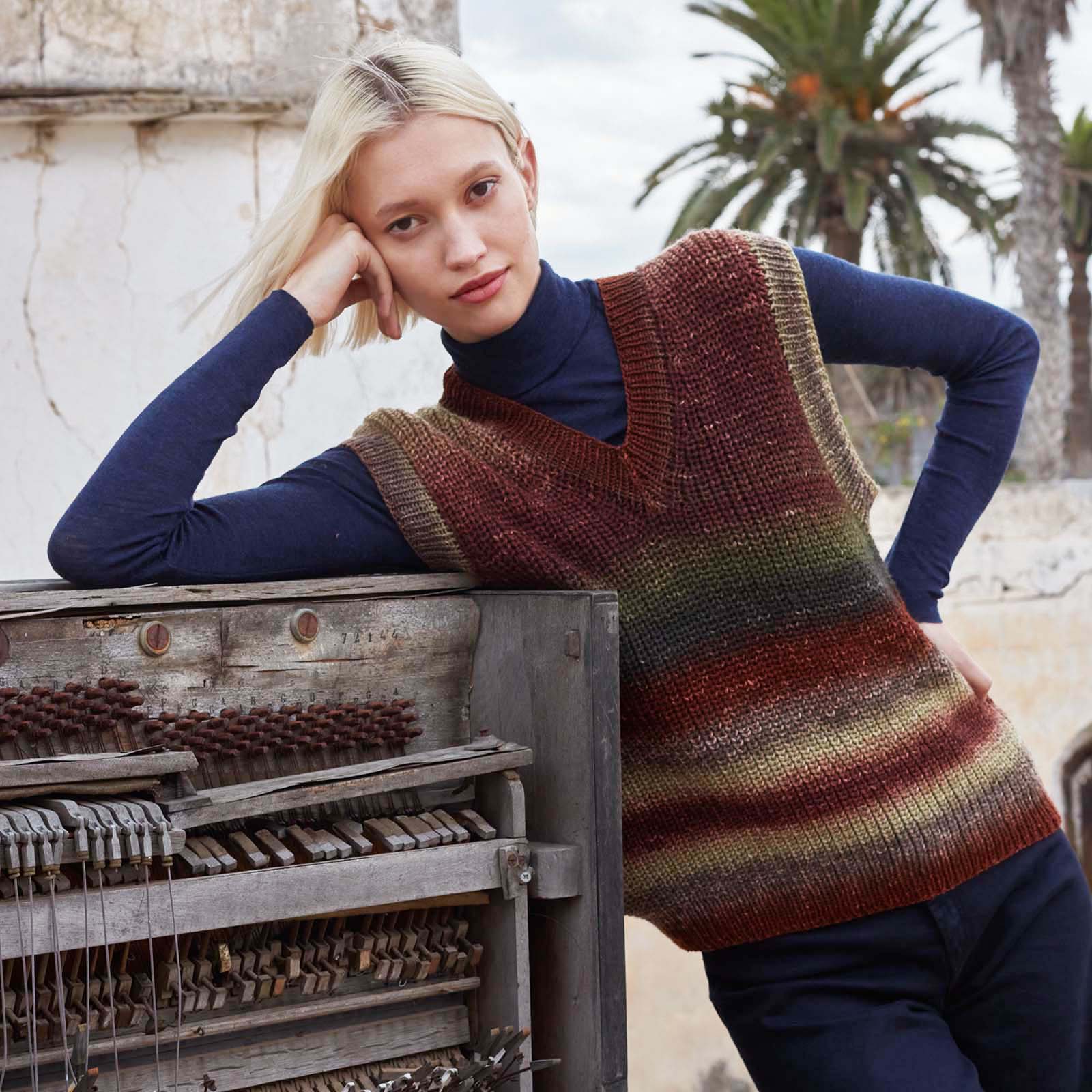 Dames spencer Move kun je nu zelf breien met het Lang Yarns breipakket. Je breit het met het zachte sokken garen en halve patentsteek zodat het een fijn soepel model wordt. Door het kleurverloop ontstaat er vanzelf een streep patroon. Deze spencer combineer je makkelijk met verschillende kledingstijlen en kun je het hele jaar door dragen.