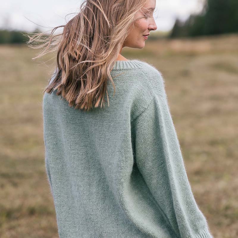 Deamestrui Aline is een basic model, een beetje oversized en gebreid met een exclusief garen wat heerlijk draagt. Je breit de trui met 2 draden, waarvan 1 pluizige draad die de trui een extra zachte uitstraling geeft. Daarbij wordt de trui van boven naar beneden gebreid waarbij je vanaf de oksels in het rond breit. Dit model kun je altijd aan. Combineer hem met een broek, een rok of over een jurk en maak zo een ingetogen, maar mooie outfit.