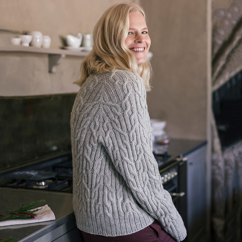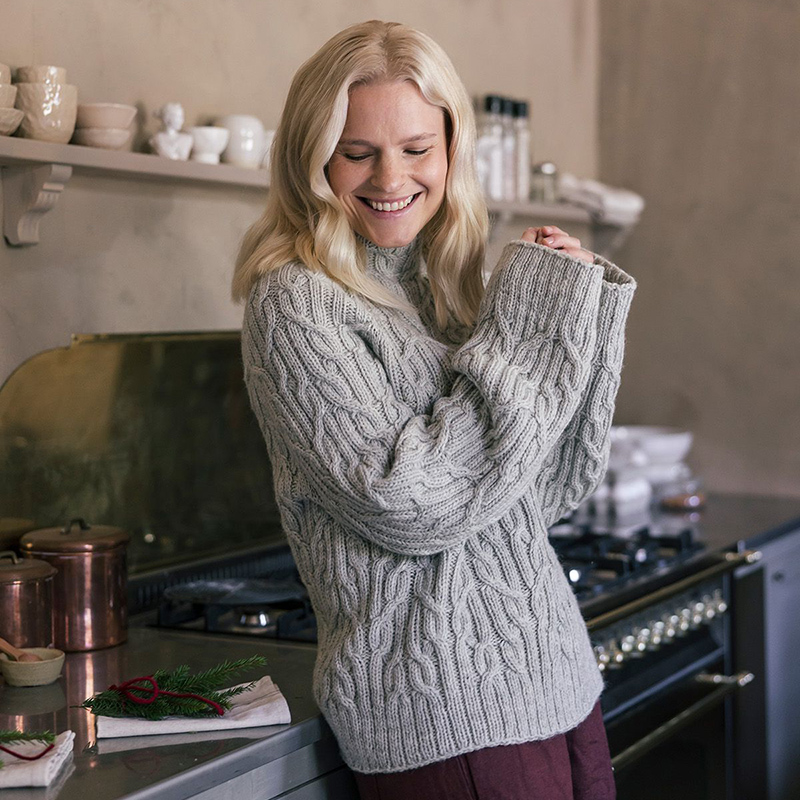 Damestrui Hilja heeft een mooi gevlochten kabelpatroon, een col en valt lekker soepel. Het is een trui die je graag draagt, een tikkelt elegant is én je lekker warm houdt. Doordat de mouwen wat langer zijn heb je geen handwarmers nodig. Dit model is echt van deze tijd!