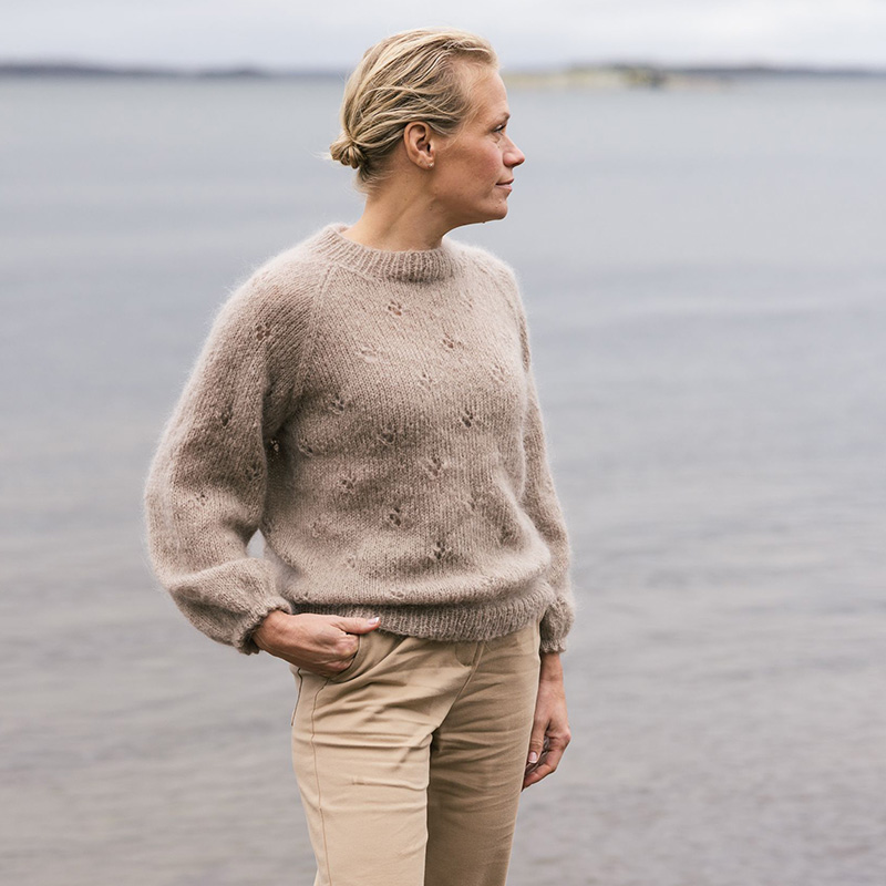 De damestrui Lempi brei je met een klein ajour motiefje, een schulprandje bij de mouwboordjes en met een raglan mouwinzet. De combinatie van deze technieken maakt het tot een mooi klassiek ogende damestrui, die ook nog eens een perfecte pasvorm heeft. Trui Lemoi wordt met het lichgewicht mohair garen Novita Hehku gebreid. Dus dit is wordt een lekker zachte trui die heerloijk draagt.