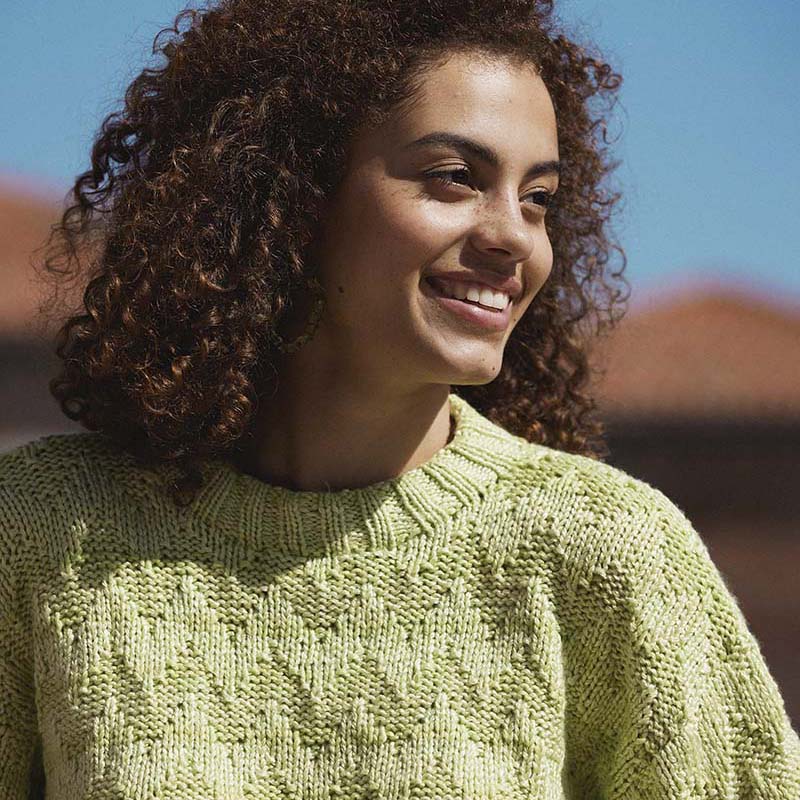 Deze damestrui met zigzag patroon brei je met het zacht glanzende garen Wooladdicts Glow. Het is een mix garen van katoen met lyocell, perfect voor de lente en zomer. Het model is lekker sportief. Je breit het zigzag motief in door gewoon het telpatroon te volgen.