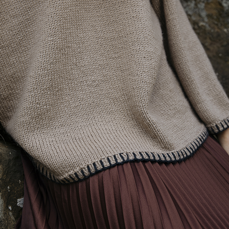 Trui Nomad brei je met 2 draden van hetzelfde garen waardoor je net wat dikkere breinaalden kunt gebruiken en je dus ook wat sneller klaar bent. Daarnaast wordt dit model ook top-down en naadloos gebreid. Zo kun je trui makkelijk passen tijdens het breien en waar gewenst de trui iets langer of korter maken.
