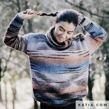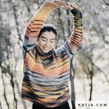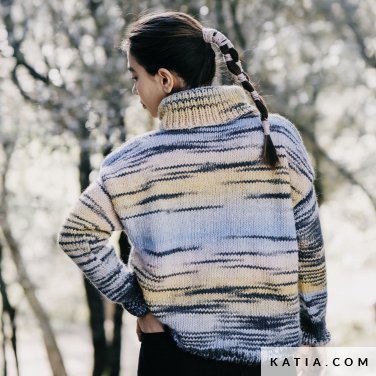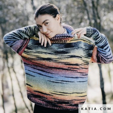 Brei deze super makkelijke damestrui met maar 3 bollen Katia Twins in iedere gewenste kleurstelling. Door het kleurverloop krijg je met een simpele breisteek, zoals de tricotsteek (= 1 toer recht en 1 toer averecht) dit mooie resultaat.
