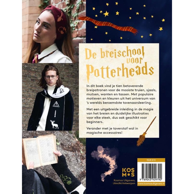 De breischool voor Potterheads is een breiboek met 10 betoverende breipatronen voor de mooiste truien, sjaals, mutsen, wanten en tassen. Met populaire motieven en kleuren uit het universum van 's werelds beroemste tovenaarsleerling.