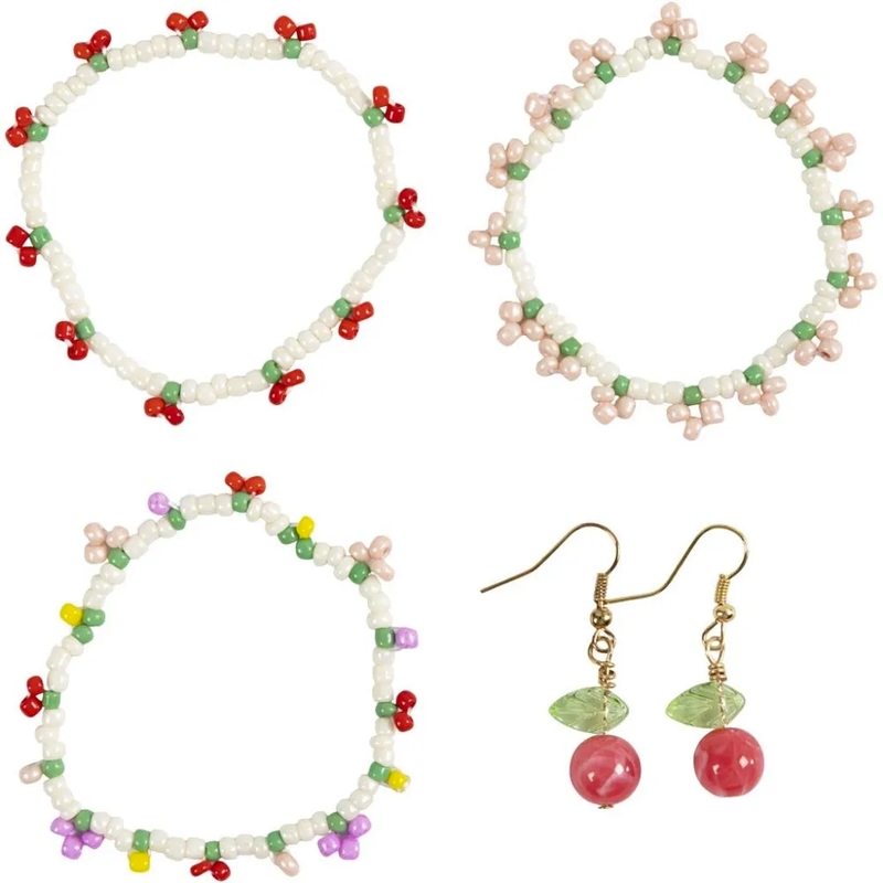 DIY-pakket sieraden maken - kralen armband en oorbellen - Kersen