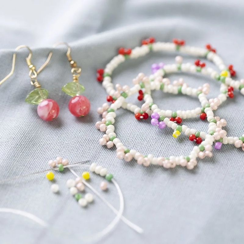 Inhoud DIY-pakket sieraden maken - kralen armband en oorbellen - Kersen: