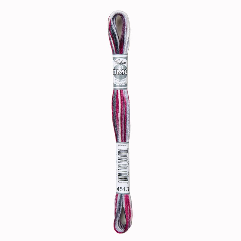 DMC Mouliné Coloris is een veelkleurig garen, samengesteld uit vier tinten in één draad. Echte kleine explosies van kleur. De verschillende tinten in elk strengetje zijn complementair, harmoniseren met elkaar, zonder ooit een gewone dégradé te vormen. Steek na steek vertelt elke draad zijn eigen verhaal met kleur. De kleuren vermengen zich kruisje na kruisje en creëren zo het motief. De draad bestaat uit 6 dunnere draadjes en is gemakkelijk te splitsen. Mouliné Coloris heeft verlopende kleuren.