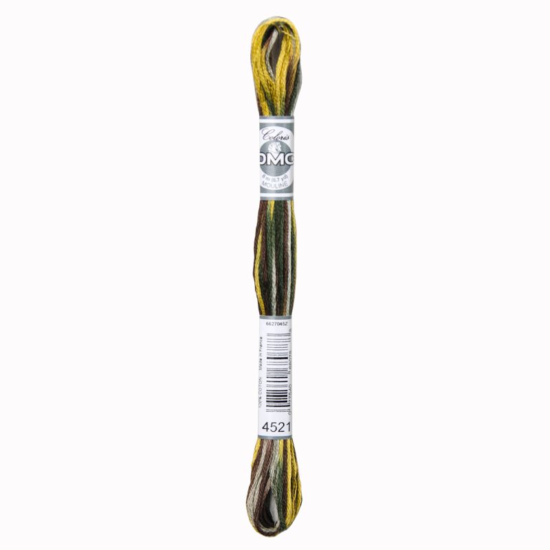 DMC Mouliné Coloris is een veelkleurig garen, samengesteld uit vier tinten in één draad. Echte kleine explosies van kleur. De verschillende tinten in elk strengetje zijn complementair, harmoniseren met elkaar, zonder ooit een gewone dégradé te vormen. Steek na steek vertelt elke draad zijn eigen verhaal met kleur. De kleuren vermengen zich kruisje na kruisje en creëren zo het motief. De draad bestaat uit 6 dunnere draadjes en is gemakkelijk te splitsen. Mouliné Coloris heeft verlopende kleuren.
