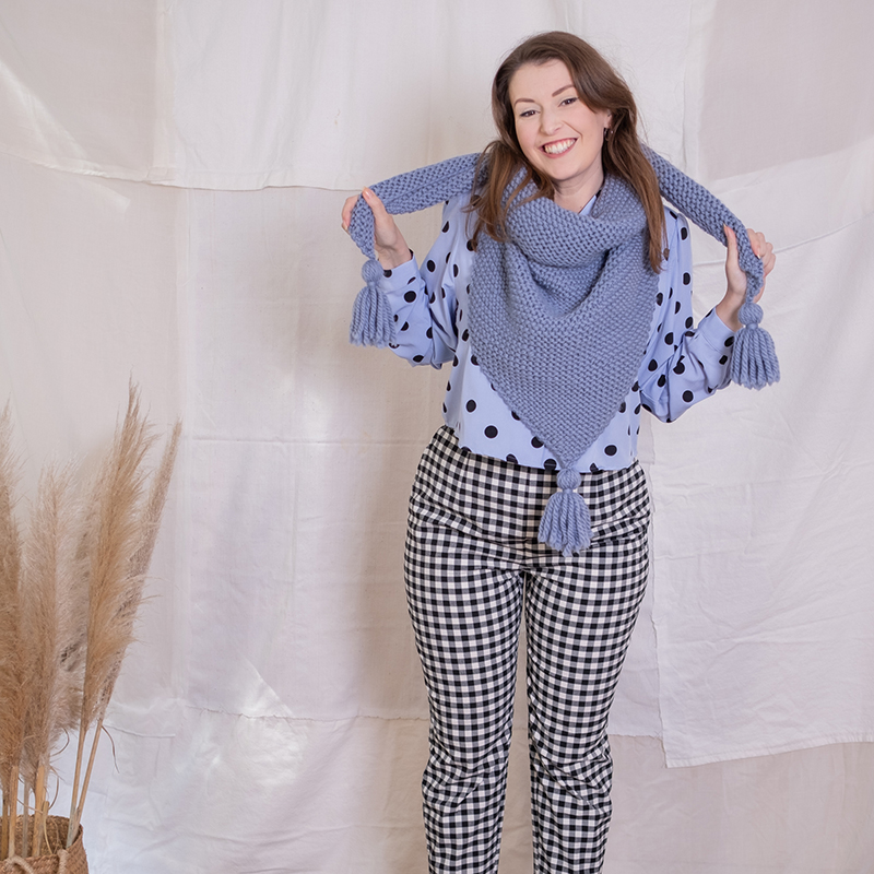 Driehoek sjaal met kwasten breien - FairMade breipakket