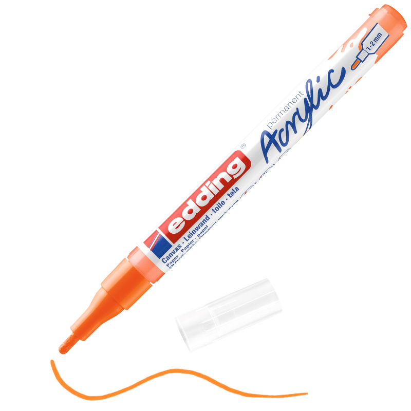 De kleinste in de serie acrylmarkers is de edding acrylmarker 5300 fijn. Met zijn fijne ronde punt en een schrijfbreedte van 1-2 mm is dit het perfecte product om op kleinere oppervlakken te werken of om details toe te voegen die jouw kunstwerk tot een uniek werk maken!